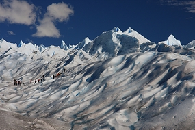 ペリトモレノ氷河ミニトレッキング【終日】: カラファテから国立公園までの移動後、まずは船で対岸まで渡ります。その後ペリトモレノ氷河の南側の氷河上を2時間弱トレッキングした後、対岸に戻り展望台からペリトモレノ氷河を1時間ほど観察します。このツアーでは氷河上と、船上、展望台からの3つの視点から氷河をご覧いただけおすすめのツアーですが、年齢制限がございますのでご注意ください。 |