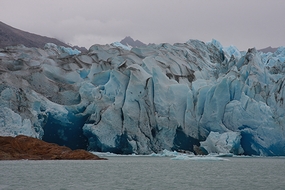 エル・チャルテンから18KM南にある、ビエドマ湖岸のトゥネル湾から、船に乗り、ロス・グラシアレス国立公園で最大の規模を持つ、ビエドマ氷河に近づくことができます。ビエドマ氷河は表面積約100平方キロメートル、氷河前面の高さ、約50メートル、幅2.5キロメートルの大きさで、世界各地で多くの氷河が後退してきている状況の中、大体同じ大きさを保ち続けております。 |